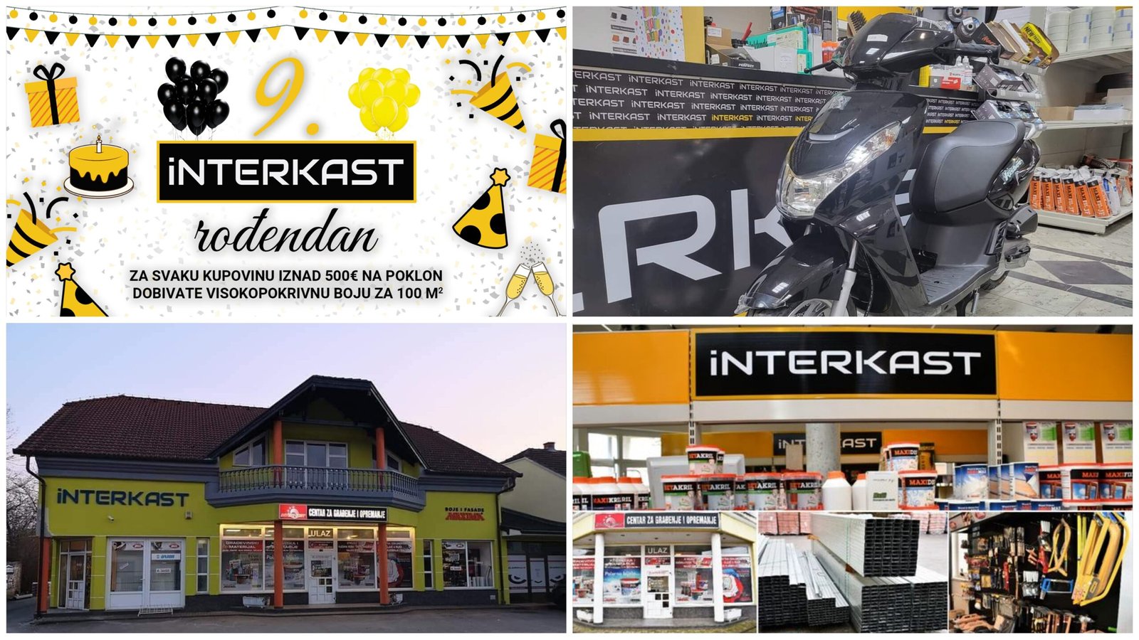 Odlična vijest za sve ljubitelje kvalitetnih građevinskih materijala! Povodom devetogodišnjice, Interkast d.o.o. nudi nevjerojatne popuste do čak 60% na svoj asortiman proizvoda. Svakodnevno se mogu pronaći fantastični popusti, a kao glavna nagrada ističe se skuter koji će biti dodijeljen jednom sretnom kupcu.