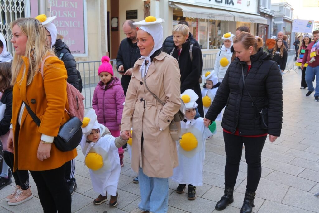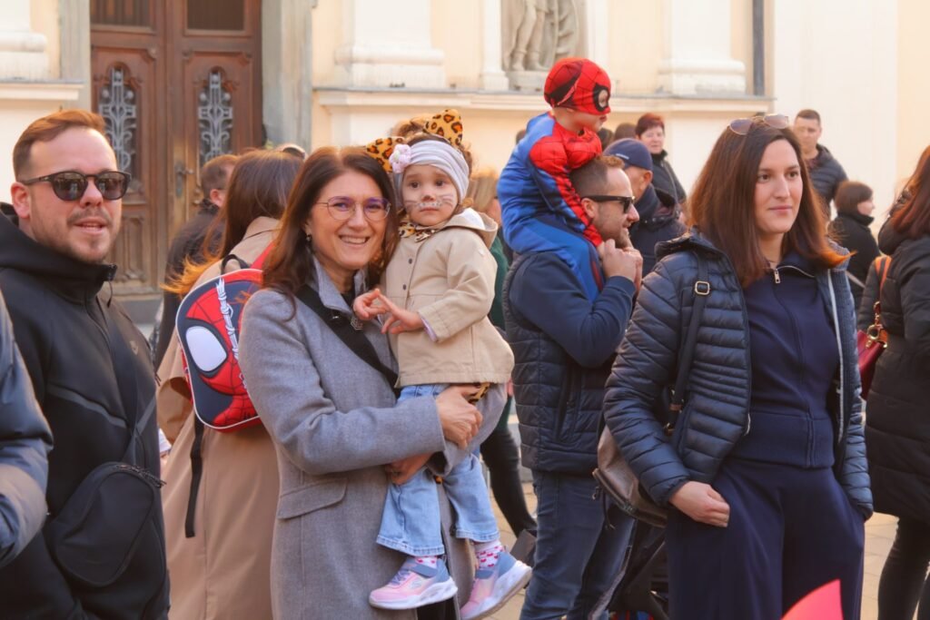 ​Čast da prvi “probiju led” i pokažu svoje maske imali su polaznici jasličkih skupina. U pratnji svojih odgojiteljica, mališani su ponosno prošetali gradom transformirani u vesele ježiće, hrabre superjunake, kokice, munje, šarene cvjetiće i pahuljice. Njihova pojava izmamila je osmijehe na lica brojnih prolaznika, roditelja, djedova i baka koji su u velikom broju došli podržati najmlađe sudionike.