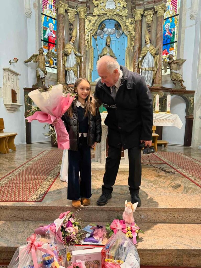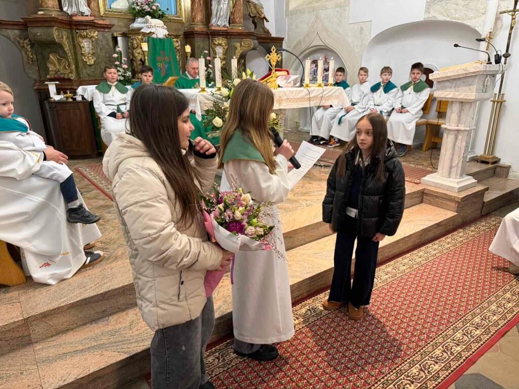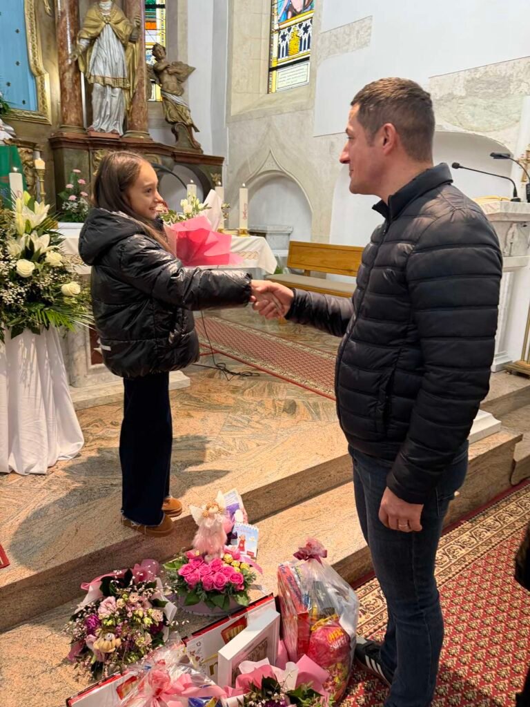 Riječi čestitke i zahvale uputio je i predsjednik Župnog pastoralnog vijeća, naglasivši kako je Nikol svojim uspjehom na poseban način proslavila ne samo sebe i svoju obitelj, nego i cijelu našu župu. U ime župne zajednice i u ime župnika Mladena, predao joj je dar kao trajnu uspomenu na ovaj radosni susret.