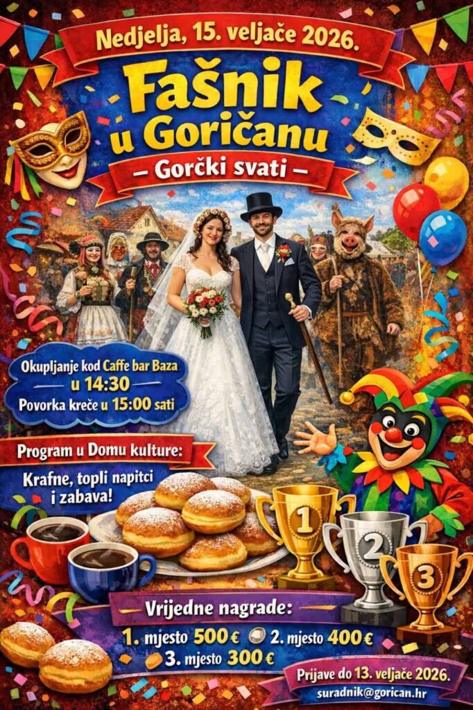 Organizatori pozivaju sve mještane i posjetitelje da se pridruže fašničkoj povorci, maskiraju se i budu dio još jednog veselja koje već godinama čini važan dio goričanske tradicije.