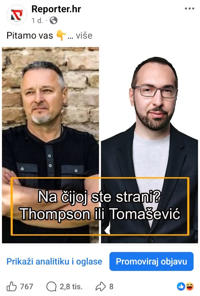 Naime, prema komentarima čitatelja, i Thompson i Tomašević dobili su gotovo identičnu razinu podrške. Omjer onih koji su se jasno svrstali uz jednu ili drugu stranu pokazao je koliko je javnost podijeljena, ali i koliko snažne emocije ova tema izaziva.