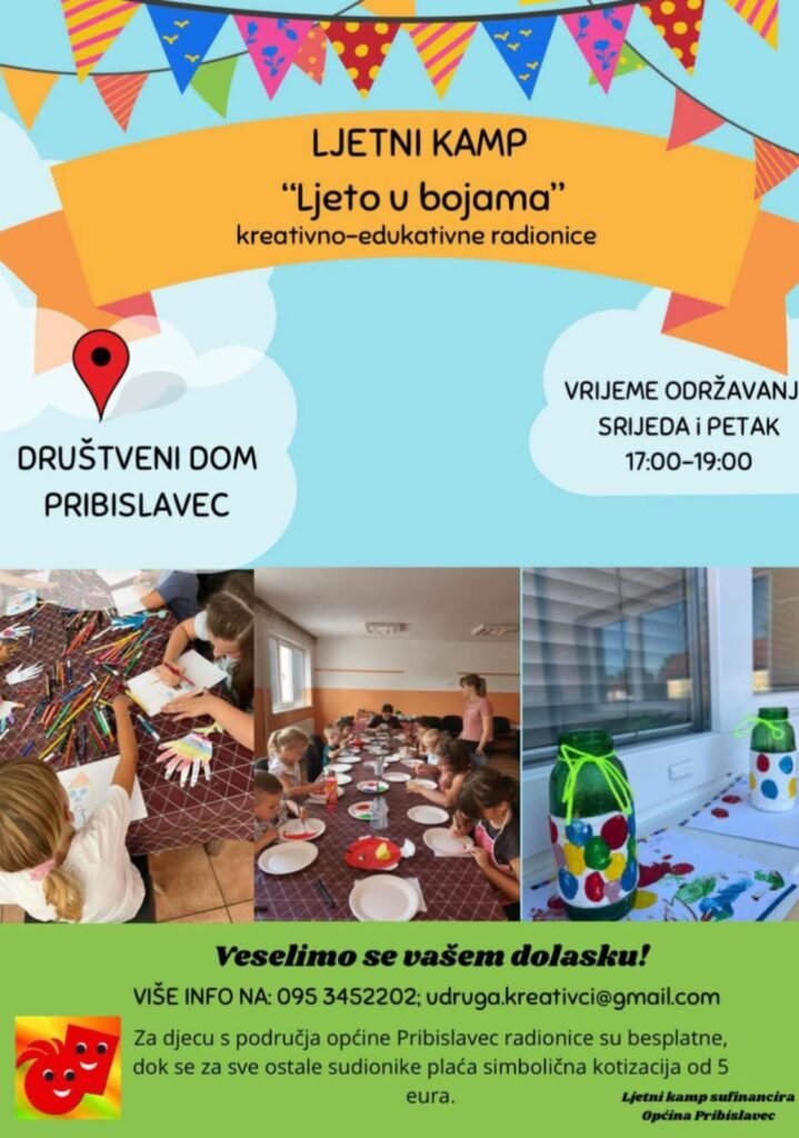 Društveni dom Pribislavec ovoga ljeta postaje središte kreativnosti i zabave! Udruga Kreativci organizira ljetni kamp pod nazivom “Ljeto u bojama”, koji uključuje raznovrsne kreativno-edukativne radionice za djecu.