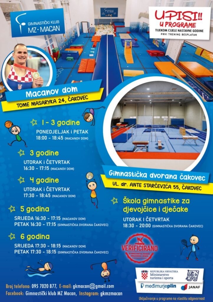Ukoliko niste sigurno je li program i dvorana dobra za vas i vaše mališana kažu kako nema brige jer je prvi trening potpuno besplatan i otvoren za sve. „Dođite, okušajte su u bazičnom sportu, upoznajte trenere i dvorane te otkrijte zašto je gimnastika brojnim pokoljenjima Čakovčanaca i Međimuraca prva sportska ljubav“ naglašavaju iz Macana.