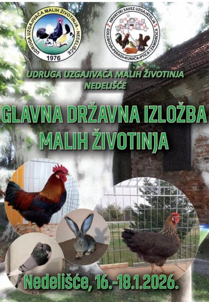 Nedelišće će sredinom siječnja 2026. godine biti središte uzgoja i izložbene djelatnosti malih životinja u Hrvatskoj. U organizaciji Udruga uzgajivača malih životinja Nedelišće, od 16. do 18. siječnja 2026., održat će se Glavna državna izložba malih životinja.
