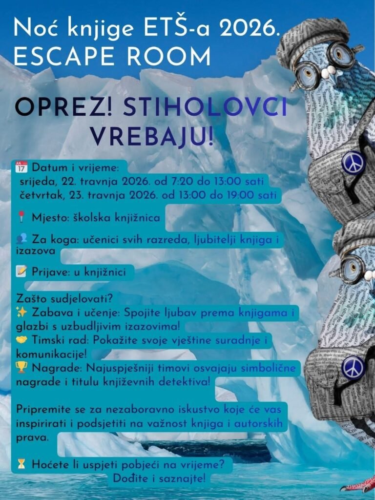 Organizatori poručuju kako je cilj događaja potaknuti ljubav prema knjizi, razvijati timski duh te učenicima ponuditi zabavno i edukativno iskustvo. Hoće li uspjeti pronaći izlaz na vrijeme – ostaje za vidjeti.