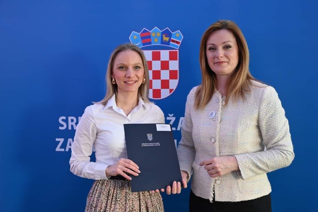 Općinska načelnica Bojana Petrić danas je prisustvovala svečanoj dodjeli Ugovora o sufinanciranju projekata usmjerenih na poboljšanje materijalnih uvjeta u dječjim vrtićima Središnjeg državnog ureda za demografiju i mlade.
