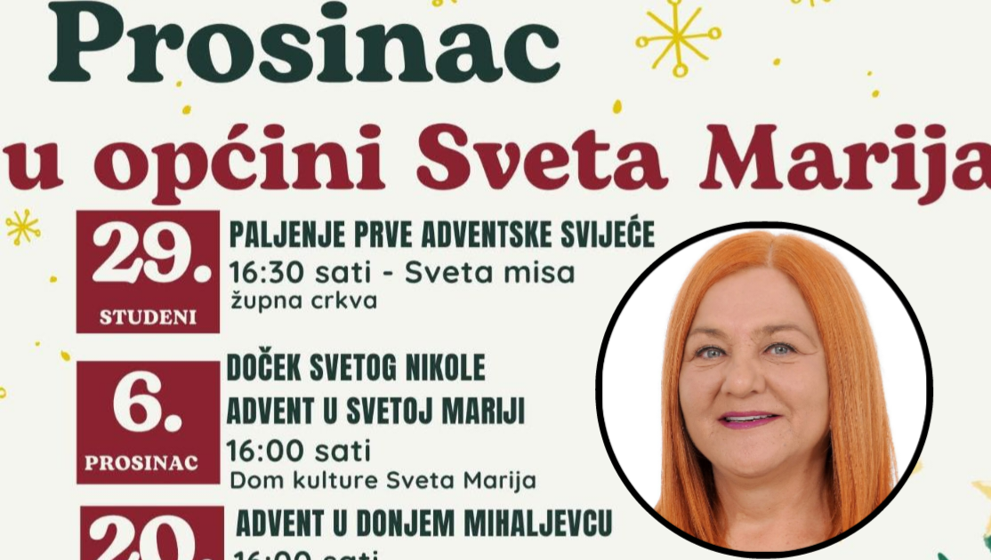 Općina Sveta Marija i ove je godine pripremila bogat prosinački program ispunjen tradicionalnim običajima, adventskim događanjima i svečanostima koje će mještanima donijeti pravi blagdanski ugođaj. Mjesec započinje paljenjem prve adventske svijeće 29. studenoga, uz svetu misu u župnoj crkvi, čime se simbolično otvara razdoblje iščekivanja Božića.