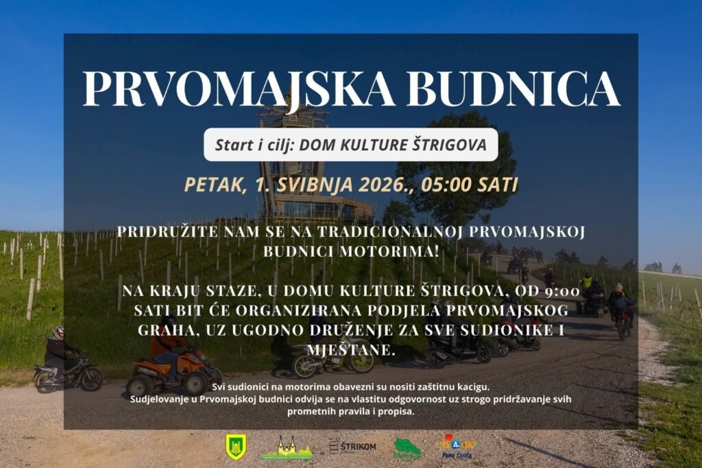 U Štrigovi će se u petak, 1. svibnja, održati tradicionalna Prvomajska budnica u organizaciji lokalne zajednice, kojom će se i ove godine obilježiti Praznik rada uz okupljanje motociklista i mještana.