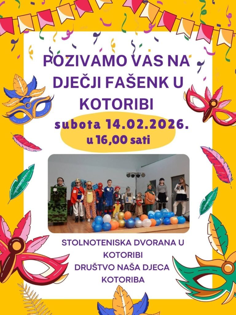 Dječji fašenk već je godinama omiljeni događaj među djecom i roditeljima, a poznat je po kreativnim maskama, dobroj zabavi i opuštenoj atmosferi. Mali sudionici imat će priliku pokazati svoje kostime, zaplesati, družiti se i uživati u programu prilagođenom njihovom uzrastu.