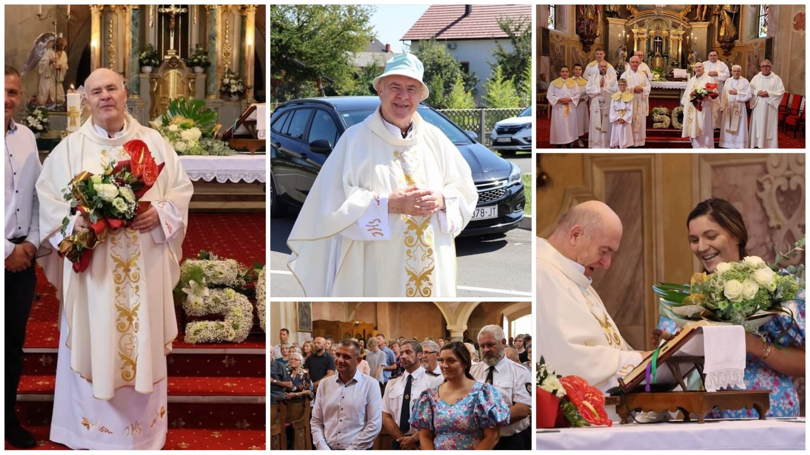 Svečanu misu u Svetoj Mariji, gdje je vodio župu 22 godina, zlatomisnik je slavio uz geslo „Žetva je velika, a radnika je malo“, a suslavili su je, vlč. Antun Hoblaj, Josip Drvoderić, Tomislav Kos, Antun Štefan, Darko Kelemenić te domaći župnik Mirko Pilaj. A uz brojne župljane, vjernike, rodbine i prijatelja, svetoj misi prisustvovao i župan Međimurske županije Matija Posavec te predsjednica Općinskoga vijeća Svete Marije Gabrijela Jakupek Tokar.