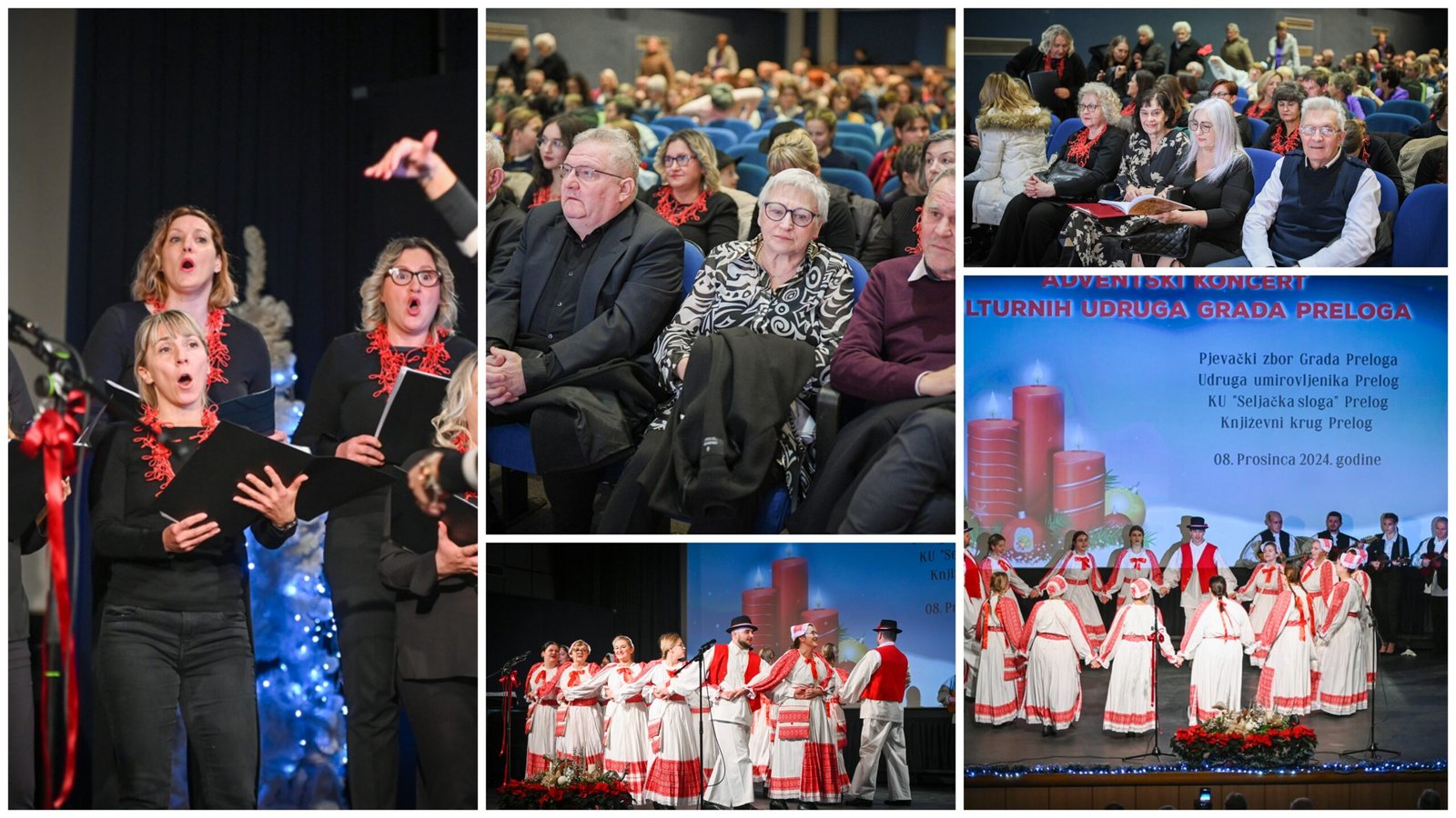 U programu Adventskog koncerta, održanog u prostoru Doma kulture u Prelogu, sudjelovali su redom, Kulturna udruga Seljačka sloga Prelog, sa svojim starijom i dječjom sekcijom (voditelji Danijela Turek, Suzana Lacković i Marijan Lastavec), zatim članice Pjevačkog zbora Udruge umirovljenika Prelog (voditeljica Ljubica Crnčec) u pratnji tamburaša Udruge umirovljenika (voditelj Stjepan Naranđa), Plesno scenska skupina Udruge umirovljenika Prelog (voditeljica Katarina Herman), članice Pjevačkog zbora Grada Preloga (voditeljica Martina Jakšić Rodiger) i na kraju članovi Književnog kruga (Marija Novak, Vinko Rojko i Snežana Hižman).