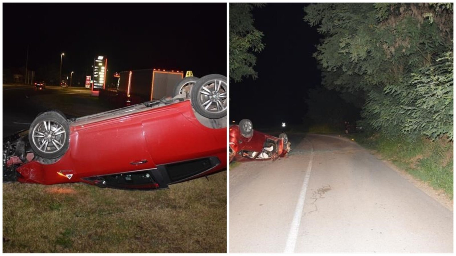 Prvo je u subotu, 27. srpnja oko 23:20 sati, između Slemenica i Krištanovca, 35-godišnjak upravljao osobnim automobilom čakovečkih registarskih oznaka u vrijeme dok je u krvi imao prisutno 1,49 g/kg alkohola, gdje brzinu kretanja vozila nije prilagodio osobinama ceste (zavoj) te vidljivosti (noć), tako da vozilo može pravodobno zaustaviti pred svakom zaprekom koju, u konkretnim uvjetima, može predvidjeti. Zbog toga je u zavoju izgubio nadzor nad upravljanjem vozilom te je s vozilom sišao izvan kolnika, gdje je udario u zemljani nasip, nakon čega se vozilom vratio na kolnik i prevrnuo na krov.