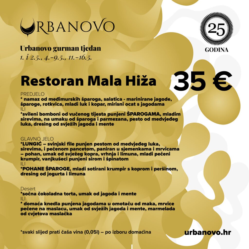 U sklopu jubilarnog 25. izdanja manifestacije Urbanovo, od 1. do 17. svibnja održava se Urbanovo gurman tjedan koji donosi posebnu eno-gastronomsku ponudu u odabranim međimurskim restoranima.